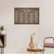 Poster de assentos de madeira castanha. A madeira russa parece com muitas seções de texto branco impresso. Assentos na recepção, indicando os respectivos nomes por ordem alfabética ou por número de tabela. Faça upgrade para um tipo de papel mais espesso.