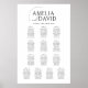 Plano Moderno de Casamento. Sinal de boas-vindas. Gráfico de Assentos Simples Personalizado para 130 convidados (13 mesas). Basta clicar no link personalizar mais, mostrado na área de personalização de texto à direita, e escolher seu fundo de cor personalizado. Este poster de placa faz com que seja rápido e fácil criar acréscimos incríveis à decoração do casamento. Os sinais podem ser ampliados, há muitos tamanhos a serem escolhidos, assim como opções de enquadramento e correspondência personalizados.