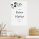 Simples e elegante sinal de casamento de folhagem de eucalipto verde.
