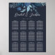 O gráfico de assentos de casamentos corresponde à nossa coleção do Winter Azure, com folhagem botânica de cor azul-aquática gelada no topo, com os detalhes de assentos de seus convidados embaixo.