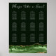 Gráfico de assentos da Mesa de casamento de agata verde. A fonte do script é realçada com a fonte de nome de serif de leitura fácil. Fácil de ajustar para as suas necessidades de casamento. Cartões de mesa personalizados.
