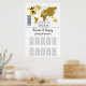Este design apresenta um tema de passagem de embarque. Ele mostra um mapa dourado do mundo junto com dois aviões fazer forma cardíaca à medida que viagem pelo mundo. Este destino tematizado design de casamento é definido como um cartão de embarque com a data do casamento personalizado nos quadrados. Um design de destino romântico com um toque elegante. Ideal para um casamento de destino, não importa onde no mundo. O perfeito design de assentos de viagem da temporada inteira. Os convites de casamento e outros artigos de papelaria também estão disponíveis.