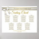Torne sua recepção de casamento bonita com este assento. Projetado como parte de nossa Suite de Casamento de Fita Branca e Dourada, ele apresenta um design simples, mas elegante, com texto dourado sobre fundo branco, com fita branca e arco com trim dourado. Este gráfico mostra as atribuições de mesa para que seus convidados tenham facilidade em encontrar a mesa certa.