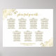 Este lindo quadro de assentos de casamento inclui assentos para 7 mesas ou 70 convidados com 10 assentos por mesa. O design sofisticado chic é simples, mas elegante, com texto dourado sobre fundo branco. No título lê-se: "por favor, encontre sua mesa" em uma caligrafia antiga e os cantos são decorados com folhas falsas de ouro em um delicado padrão floral. Uma maneira maravilhosa de ajudar seus convidados a encontrar suas mesas na sua recepção enquanto adiciona um estilo.
