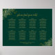 Este lindo gráfico de assentos de casamento apresenta um design sofisticado chic com texto dourado sobre um fundo verde esmeralda. O título é uma leitura elegante da caligrafia: por favor, encontre sua mesa. Os cantos são decorados com fritas de folhas falsas de ouro em um delicado padrão floral. Inclui assentos para 8 mesas ou 80 convidados com 10 lugares por mesa. Uma maneira maravilhosa de ajudar seus convidados a encontrar suas mesas na sua recepção enquanto adiciona um estilo.
