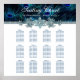 Modelo de assentos da mesa de casamento de Peacock com realces de prata bonito em um lindo fundo de pavão azul real. Este lindo gráfico de casamento real e azul de pavão é facilmente personalizado com os detalhes do evento, a redação e o estilo da fonte.