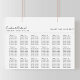 Esta tabela de casamento minimalista é perfeita para um casamento rústico. O design apresenta uma fonte elegante de caligrafia em fundo branco para embelezar seu evento.