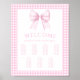 Explore a sofisticação com o nosso elegante cartaz de assento de chá de bebê pré-desidratada, poster, adornada com uma charmosa fita de arco rosa para bebê contra um pano de fundo do padrão clássico de gingham. Perfeito por receber convidados para comemorar com estilo e refinamento.
