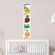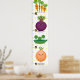 Divertido com legumes fofo! Estes vegetais kawaii apresentam um feliz quarteto de cenoura, beterraba, cebola e ervilhas saltitantes, todos desenhados no estilo encantador.
