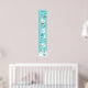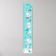 Este adorável gráfico de crescimento apresenta uma floresta planície com galerias de inverno com raposas árcticas, aves, neve, flocos de neve e árvores com capas de neve. O fundo é um verde azul-azul-turquesa. Gráficos por PrettyGrafik