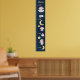 Este gráfico de altura giro e caprichoso pode ser personalizado com um nome. Ele apresenta um adorável elefante bebê em um arco rosa, nuvens, estrelas e uma lua crescente. Ao fundo está um céu azul marinho estrelado.