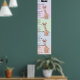 Um adorável gráfico de crescimento do padrão de girafa de desenho animado, poster de cores claras e pastéis, cor-de-rosa, azul, verde e roxo no fundo. Mantenha-o ou mude-o quando o personalizar. Acompanhe o crescimento do seu filho com este gráfico de crescimento. Começa a 17 polegadas e termina a 65 polegadas. Altere o "Nome" no gráfico. Redimensionar o texto ou adicionar outra fonte. Adicione o clip art ou pequenos desenhos do seu filho ao gráfico.