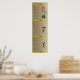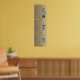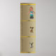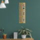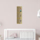 As bonecas marcam o crescimento da criança. Gato de 1 a 2 pés, cão de 2 a 3 pés e menina de 4 a 5 pés. Meça o crescimento da criança contra o fundo texturizado bege. Linhas amarelas a 2 pés (medida do chão), 3, 4 e 5 pés. Polegadas entre linhas como 1,2,3,4,5,6,7,8,9,0,1,2 (linha amarela).