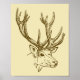 A cabeça de um veado com um enorme rack. Para aqueles que são a favor ou contra a caça aos veados. Você pode personalizá-lo e adicionar qualquer nome e/ou texto. Vetor de imagem de veado em castanho escuro e alguns em preto e alguns têm um fundo bege.