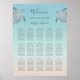 Duas elegantes tartarugas-marinhas prateadas num fundo de gradiente no estilo da praia de abstrato. poster de lista de assentos de recepção de casamento com um texto de boas-vindas, seus nomes de noiva e noiva em um script elegante e campos de texto para 100 convidados.