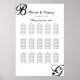 Este design apresenta as iniciais da noiva e do noivo como o foco principal do design. As iniciais personalizadas de script usando tipografia de fontes de script criam uma fusão perfeita de moderno e elegância. Um simples design de assentos minimalista personalizado com moderno monograma preto e branco. Os convites para casamento e artigos de papelaria também estão disponíveis. Para reposicionar as iniciais, clique no link "Clique para personalizar mais" ao personalizar detalhes.