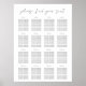 O gráfico moderno e mínimo de assentos de convidados de casamento oferece espaço para até 16 mesas de 10, ou 160 convidados. "Por favor, encontre o seu lugar" ou a sua escolha de texto aparecerá no topo, em letras suaves a preto.