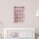 Este é um poster elegante com um padrão de cor de rosa rosa e pérolas brancas. O texto "Por favor, encontre o seu lugar" é uma inscrição à mão com cores brancas e douradas. Há espaço suficiente para mais de 100 convidados. Você pode excluir as mesas de que não precisa e redimensionar a fonte de cada mesa para ajustar seu lugar no poster. Ou simplesmente mover-se pelo bloco de mesas.