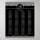 Um gráfico de assentos de recepção de casamento é uma maneira elegante de direcionar seus convidados para suas mesas em vez de usar cartões de lugar. Você também pode manter seu assento como um momento do seu casamento e das pessoas que celebraram com você. Este gráfico monograma de assentos de casamento apresenta uma adorável cor damasco floral branca e preta com uma inicial em um círculo preto. Ele foi projetado para ajustado em um quadro padrão e vem em uma variedade de tamanhos, incluindo: 11x14, 15x19 e 23x29. Você pode fornecer seu próprio quadro ou solicitar seu quadro de casamento com um quadro incluído. Também oferecemos uma versão quadrada deste gráfico de assentos de casamento. Você pode adicionar nomes de convidado, personalizar a letra do monograma e ajustar o layout na página de pedido do produto. Verifique os outros produtos coordenadores da nossa Coleção de Casamentos Floral Damask II - Black.