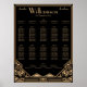 Este gráfico de assentos de Recepção de casamento sublime ou poster de plano de mesa tem um visual vintage de 1920, "The Excelente Gatsby" Art Deco, estética geométrica em tons pretos e ouros. Este formato do plano é definido para acomodar 12 mesas convidadas e até 10 convidados por mesa. Observe que este gráfico de assentos é criado usando somente impressão colorida (sem preenchimento usado), a cor do efeito ouro é criada inteiramente por meio da renderização sutil e realce para os tons de base bege.
