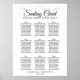 Torne a sua recepção de casamento bonita com este gráfico de 9 mesas. Projetado como parte do nosso Silver Foil Elegante Wedding Suite, ele apresenta um simples mas elegante design com texto preto sobre fundo branco com uma borda floral de folha fina prateada. Este gráfico mostra atribuições de mesa para 90 convidados.