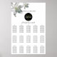 Este design apresenta flores brancas de lírio. Os belos lírios brancos elegantes complementam a elegante forma do círculo preto moderno que circunda a data do casamento. Uma fusão perfeita de modernos e quentes com tons verdes. Verde, preto e branco são uma combinação perfeita para um elegante casamento temido de jardim floral. Design único de assentos de casamento com elementos modernos. Os convites de casamento e outros artigos de papelaria também estão disponíveis.