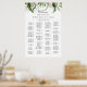 Este gráfico de lugares alfabéticos em verde-tropical-ouro é perfeito para um casamento de destino. O design apresenta ouro de aquarela pintada à mão e palmeiras verdes e folhas de bananeiras com flores cor-de-rosa bem organizadas em belos buquês. Este sinal pode ser usado para organizar seus convidados em ordem alfabética ou por número de tabela. Ele tem espaço suficiente para cerca de 150 convidados de casamento. Deixe espaço para mais (ou menos) clicando no botão personalizar e aumente ou diminua o tamanho da fonte. Personalize este sinal com os nomes da noiva e do noivo e a data.