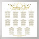 Este lindo gráfico de 11 mesas de assentos de casamento vai facilitar aos seus convidados encontrar os assentos atribuídos na sua recepção. Possui um design simples, mas elegante, com texto dourado sobre fundo branco e borda de filigrana floral de folha de papel dourada.