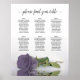Este elegante gráfico de assentos de casamento tem atribuições de mesa para 60 convidados em dez pessoas por mesa. Apresenta um belo design com um púrpura poeirento ou rosa de cor lavanda refletindo em água com ondas e ondulações. O título da caligrafia do roteiro lacy diz "por favor encontre sua mesa" Há espaço para os nomes do casal de casamento, assim como a data do casamento.