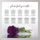 Este lindo quadro de assentos de casamento tem atribuições de mesa para 100 convidados em 10 mesas (10 pessoas por mesa). O design é na moda, clássico, romântico e chic, com um solteiro roxo de ameixa ou rosa de beringela refletindo em água com ondas e ondulações. Há um título de caligrafia de escrita antiga lendo "por favor encontre sua mesa" assim como espaço para os nomes do casal e a data do casamento. Excelente maneira de tornar sua recepção bonita enquanto ajuda seus hóspedes a encontrar o lugar certo.