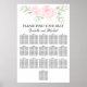 Gráfico de assentos florais cor-de-rosa-pincelada de 16 mesas para um casamento de verão ou primavera. Duas grandes rosas cor-de-rosa escamoteadas ficam lindas contra folhas verdes seniores. Por favor, ache que seu lugar está escrito em caracteres simples e elegantes. Os nomes da noiva e noiva estão escritos abaixo em uma letra de escrita romântica. É muito fácil editar essas listas e as listas de mesas abaixo.