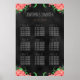 © Sunny Mars Designs - Hibiscus Floral: Rosa em Chalkboard Wedding Seating Charts para Nove Mesas - Personalizável, moderno, elegante, elegante, moda, chic, gráfico, gráfico, gráfico de assentos de mesa preto impresso por personalização, com bela bonito cor-de-rosa, design de hibisco tropical floral contra um quadro negro ou fundo de conselho.