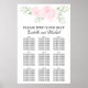 Belo gráfico floral rosa pincelado para um casamento. Duas grandes rosas cor-de-rosa escamoteadas parecem belas contra folhas verdes sádias. Por favor, ache que seu lugar está escrito em caracteres simples e elegantes. Os nomes da noiva e noiva estão escritos abaixo em uma letra de escrita romântica. É muito fácil editar essas listas e as listas de mesas abaixo.
