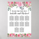 Linda tabela de assentos florais cor-de-rosa para um casamento de verão ou primavera. As flores rosadas escuras e leves, cor-de-rosa, parecem belas contra uma variedade de verde.Os arranjos florais são colocados tanto no topo como no fundo do assento. Por favor, ache que seu lugar está escrito em caracteres simples e elegantes. Os nomes da noiva e noiva estão escritos abaixo em uma letra de escrita romântica. É muito fácil editar essas listas e as listas de mesas abaixo.