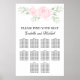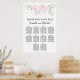 Belo gráfico floral rosa pincelado para um casamento. Duas grandes rosas cor-de-rosa escamoteadas parecem belas contra folhas verdes sádias. Por favor, ache que seu lugar está escrito em caracteres simples e elegantes. Os nomes da noiva e noiva estão escritos abaixo em uma letra de escrita romântica. É muito fácil editar essas listas e as listas de mesas abaixo.