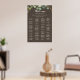 Este gráfico de assentos alfabéticos marrom-dourado geométrico é perfeito para um casamento rústico. A design apresenta lindas folhas verdes pintadas manualmente em um fundo castanho, enfeitando um quadro geométrico dourado. Este sinal pode ser usado para organizar seus convidados em ordem alfabética ou por número de tabela. Ele tem espaço suficiente para cerca de 150 convidados de casamento. Deixe espaço para mais (ou menos) clicando no botão personalizar e aumente ou diminua o tamanho da fonte. Personalize este sinal com os nomes da noiva e do noivo e a data.
