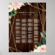 Este quadro de assentos de casamento apresenta flores pintadas de aquarelas em folhagem cor-de-rosa-claro, branca e verde com uma estrutura de ouro geométrica em um fundo de impressão de madeira rústica. Para personalização mais avançada deste design, clique no link Personalizar Mais para alterar a fonte, o tamanho e a cor. Itens correspondentes também estão disponíveis.