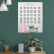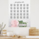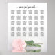 Esta bela tabela de assentos de casamento apresenta uma imagem de um longo rosa cor-de-rosa pincelado, pincelado e manchado, deitado do lado, refletindo em água com ondas e ondulações. O título diz "por favor, encontre sua mesa" na elegante caligrafia do roteiro de lacy. Há espaço para os nomes dos casais e data do casamento. Este gráfico tem atribuições de mesa para 300 convidados em um arranjo tradicional de 10 pessoas por mesa.