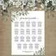 Este quadro de casamento é rústico e caseiro, mas na moda e elegante. Apresenta uma pintura manual de aquarela, design boho chic com ranhuras de folhas de eucalipto, verde e folhagem em tons de menta, musgo e sábio verdes. Inclui atribuições de mesa para 19 mesas a 10 lugares por mesa, num total de 190 convidados. O título da caligrafia do roteiro lacy diz: Por favor, encontre sua mesa, e os nomes do casal e da data do casamento aparecerão na parte inferior. Uma maneira maravilhosa de ajudar seus convidados a encontrar seus assentos enquanto adiciona elegância e estilo à sua recepção.