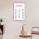 Poster Gráfico Sentado Alfabético de Prata Rosa-Rosa com