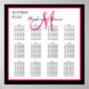 Modelo de Poster do Plano de Casamento. Assento para 120 convidados com 10 ou menos numa mesa. Altere as cores, o monograma, os nomes e adicione a sua mesa e os nomes de convidado para o plano de assentos.