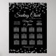 Gráfico de assentos de casamento elegante com design de preto de Silver Faux Glitter Confetti e texto personalizado. Fácil de usar e fácil de personalizar. Faça o pedido hoje!