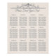 Um Gráfico de Assentos é incrivelmente útil no fazer de que você é capaz de dar uma direção clara aos seus convidados de casamento e garantir que todos tenham assento na sua recepção de casamento. Mesmo que o casamento seja menor, um gráfico fará com que o evento se sinta mais organizado. Isso permite que os convidados relaxem e mantenham o foco em comemorar. Rustic Filigree Wedding Seating Chart apresentam um padrões de filigrana no topo, seguido do texto "Por favor, encontre seu assento" e 12 mesas com uma lista de 10 convidados por baixo. Você pode aumentar ou diminuir o número de mesas e convidados. Clique no botão "Personalizar" para iniciar a personalização desses gráficos de assentos para atender à sua visão.