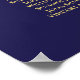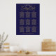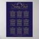 Este gráfico de 9 mesas de assentos de casamento vai facilitar aos seus convidados encontrar os seus assentos na sua recepção de casamento. Apresenta uma elegante inscrição em ouro com uma folha de folhas fiosas vintage floresce ou filigrana sobre fundo azul marinho.