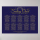 Este lindo gráfico de 10 mesas é simples, mas elegante, e facilitará para seus convidados encontrar seus assentos na sua recepção de casamento. Apresenta texto dourado sobre fundo azul marinho com bonito inscrição de script para o título e um delicado filigre floral de vintage em cima.