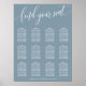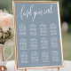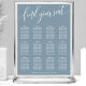 Bem-vindos aos seus convidados com este elegante e empoeirado quadro de casamento azul. Apresentando um design minimalista com um roteiro moderno que diz achar seu lugar, este gráfico de assentos é perfeito para um sofisticado e na moda. A cor suave e o layout limpo fornecem uma aparência refinada e organizada, garantindo que seus convidados possam encontrar facilmente seus assentos. Personalize com seus nomes e mesas para criar uma adição única e coesa à decoração do casamento. Este assento acomoda até 12 mesas, fazer ideal para uma celebração bem planejada e elegante.
