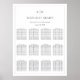 Poster de Gráficos de Assentos de Mesa de Casamento Mínimo Elegante Preto e Branco. Todos os textos estão pré-organizados para que você personalize fácil e rapidamente com seus próprios detalhes.