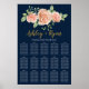 Gráfico de Assentos Florais De Casamento De Blush Dourado Azul-marinho. Design apresenta um buquê de rosas cor-de-água rosa. Visualize o link de coleção nesta página para ver todos os itens correspondentes nesta bela design.
