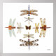 Design gráfico original e aquarelas por Thom Glace de várias espécies de libélulas e uma borboleta de manhã