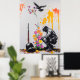 Esta obra de arte instigante em estilo grafite retrata um soldado ajoelhado ao lado de um rifle adornado com flores coloridas, simbolizando o contraste entre a guerra e a paz. Um corvo voa acima enquanto os tons vibrantes de laranja e rosa adicionam profundidade a este poderoso comentário sobre o custo humano do conflito e a esperança pela paz. Perfeito para aqueles que apreciam a arte urbana de protesto com uma mensagem profunda, esta peça traz simbolismo poderoso e cor vibrante para qualquer sala.